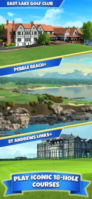 Join weekly leagues to earn legendary rewards and gear! Take on the Checkpoint Challenge, where you can golf with randomized clubs and unlock chests filled with guaranteed epic items. Master advanced golf shot mechanics and demonstrate your incredible accuracy in the Golden Shot mode to earn legendary rewards. Compete against rivals in officially licensed tournaments on real golf courses!