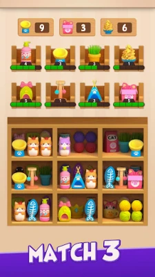 Step into the vibrant universe of Triple Cat Sort, an innovative 3D match game that challenges your organizational skills while providing endless entertainment. The primary objective? To sort and eliminate goods on shelves by matching three or more items. Each level presents a unique challenge, requiring players to strategically eliminate specific items to complete the match-3 tasks and unlock fantastic triple rewards. 🎉