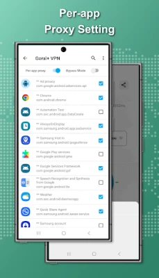Take control of your internet connection with our customizable per-app proxy feature. This allows you to select which applications utilize the VPN service, providing you with the flexibility to tailor your online experience according to your specific needs. Whether you want certain apps to remain unprotected or prefer to secure all your connections, the choice is yours.