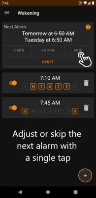 Sometimes, you may need a little extra time in the morning. With just one tap, you can offset or skip the next alarm without disrupting your entire schedule. This feature allows you to adjust your wake-up time on the fly, providing you with the freedom to listen to your body and rest when needed.