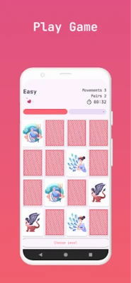 Once you select your difficulty, the game enters the preview phase. During this brief moment, all cards are displayed, allowing you to memorize their locations. After the cards flip down, the real challenge begins: