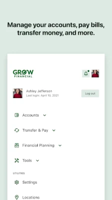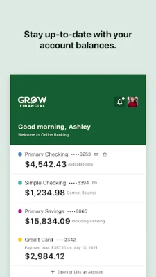 While using our services, please note that additional data charges may apply. For more details, consult your wireless carrier. You can also access your account through our online banking portal at growfinancial.org. Enjoy the convenience of managing your finances from the comfort of your home or on the go.