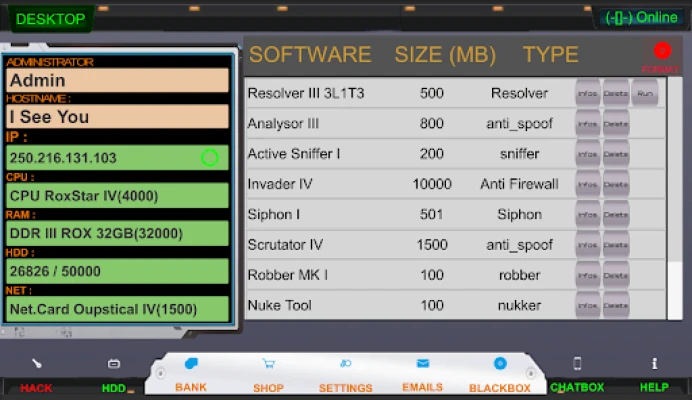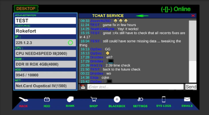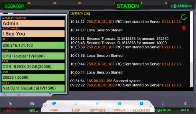 This game is not just a simple application; it’s a comprehensive simulation that allows players to engage in hacking activities within a safe and entertaining framework. As you navigate through the game, you will encounter a basic computer station equipped with a SYSLOG screen and a TCHAT window. These tools are essential for your hacking endeavors, providing you with the necessary information to locate in-game IP addresses and critical data.