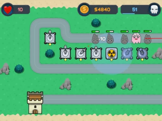 - Four Tower Types: Choose from four unique tower types, each with three upgrade levels, allowing for diverse strategies and customization.