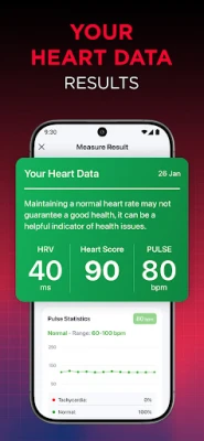 After each measurement, iCardiac provides a personalized heart health score based on age and gender benchmarks. By integrating your HRV and heart rate data, the app offers a comprehensive view of your cardiovascular status, empowering you to make informed health decisions.