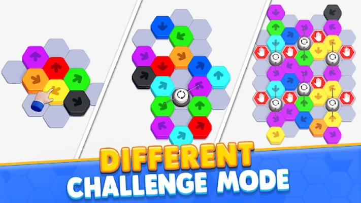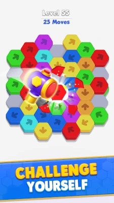 - Tap to Move: Simply tap on a hexagon tile to shift its position and clear the screen. Each tap is a step towards solving the puzzle.