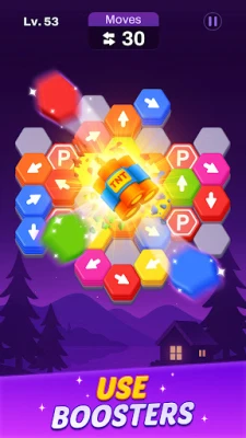 - Powerful Tools: When faced with particularly tough puzzles, Hexout provides powerful tools like hammers, bombs, and extra moves. These tools help you clear blockages and make challenging levels more manageable.
