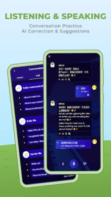 Engage in daily conversations with HeyAI, your immersive language tutor. This feature allows you to:
