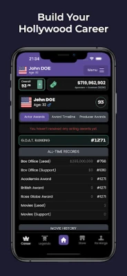 Compete against other players in the exhilarating Greatest Actor of All Time (GOAT) rankings. Showcase your talent by winning awards and gaining recognition for your performances. As you rise through the ranks, you’ll not only earn respect but also unlock exclusive opportunities that can propel your career to new heights. Can you outshine your competitors and claim the title of the most legendary actor?