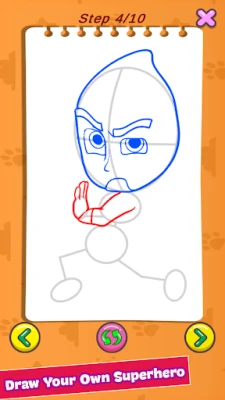 With our app, children can easily follow straightforward tutorials to create their own fun heroes. They’ll learn to draw characters inspired by a courageous cat, a clever owl, and a powerful lizard—each adorned with unique masks and costumes that spark the imagination!
