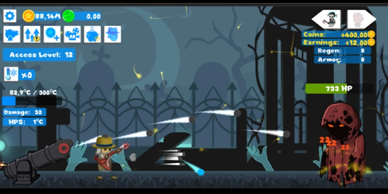 In Idle Cannon Quest, your journey begins as you take on the role of a cannon master. As you progress, you will manage and upgrade an impressive arsenal of powerful cannons. With five distinct cannons to unlock, each boasting unique abilities and strengths, you will blast through even the most challenging enemies. Choose from an array of specialized bullets, including venom bullets, ice bullets, and spike bullets, to enhance your firepower and dominate the battlefield.
