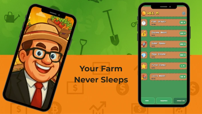 Construct the most profitable farming empire imaginable! Optimize your crop selection, maximize upgrade efficiency, and dominate the idle farming landscape. Your strategic choices will determine your success as a farming tycoon.