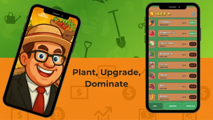 Manage your farming tycoon business like a true entrepreneur! Make strategic decisions regarding crop investments, prioritize upgrades, and time your expansions wisely. Experience the excitement of watching your idle farming business thrive!