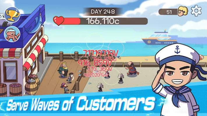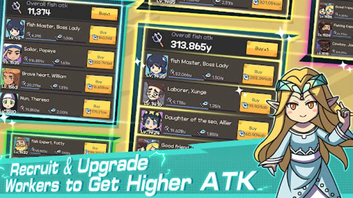 As your business expands, the need for a skilled workforce becomes paramount. In Idle Fishing Tycoon, you can recruit employees with unique backgrounds and personalities. From the adventurous Treasure Hunter Jones to the mystical Genie, and even the pious Nun Teresa and the iconic Popeye the Sailor, each character brings something special to your team. Their distinct abilities will help you serve customers more efficiently, ensuring that your business thrives.