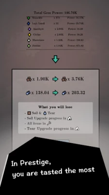 The prestige system in Idle Gem introduces an exciting layer of gameplay. Players can restart their journey with carryover bonuses, allowing for a smoother and more efficient experience with each loop. This roguelite adventure ensures that no two playthroughs are the same, as players can experiment with different strategies and builds. The thrill of starting anew while retaining some of your hard-earned progress keeps the gameplay fresh and engaging.