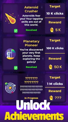 Venture into the unknown as you unlock mysterious planets and expand your empire across infinite galaxies. The universe is vast, and every tap brings you closer to uncovering its secrets.