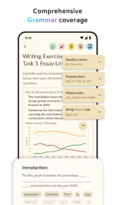 Boost your ability to craft well-structured essays and letters for the IELTS exam with confidence. The app provides effective answer strategies and a powerful writing prompts tool to ensure your essays meet the high standards required for top scores. Additionally, built-in grammar resources offer clear explanations and examples, enhancing the persuasiveness of your writing.