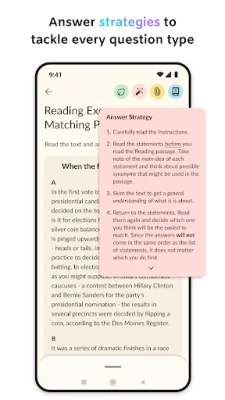 Reading comprehension is vital for success in the IELTS exam. Our app delivers comprehensive lessons that address answer strategies for all types of IELTS reading questions, along with expert tips and tricks. Exercises simulate authentic IELTS reading passages, complete with detailed answer explanations, empowering you to excel in the reading section.