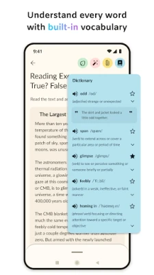This app is not merely a tool for IELTS preparation; it is a comprehensive resource for English language learning. With daily goals and regular practice tests, you will improve your overall English skills and perform at your best on exam day. Download our IELTS Prep App today and embark on your journey toward achieving your goals. Start your path to IELTS band 9 right now!