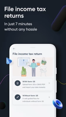 - ITR E-Filing: Upload multiple Form 16s easily and securely. The app also displays any pending tax dues, allowing you to track your ITR status effortlessly.