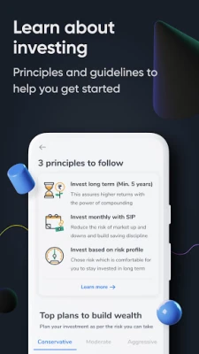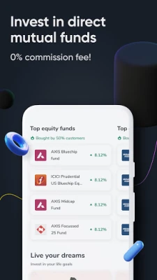 - Free Direct Mutual Fund Investments: Access a variety of mutual funds, including large-cap, small-cap, ELSS, liquid, debt, high-performance, and balanced funds. Choose between lump-sum investments or systematic investment plans (SIPs).