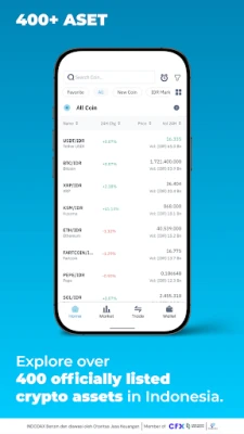 With over 8.3 million registered users, Indodax stands as the largest and most trusted crypto trading platform in Indonesia. The platform is officially registered and supervised by the Otoritas Jasa Keuangan and is a member of CFX. Indodax also holds international ISO certifications (9001:2015, 27001:2013, and 27017:2015), ensuring the highest level of security for your trading activities.