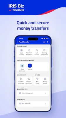Need to transfer money? With IRIS Biz, you can easily move funds between YES BANK accounts or to other banks using IMPS, RTGS, and NEFT facilities. The app supports various payment methods, ensuring that your money reaches its destination swiftly and securely.