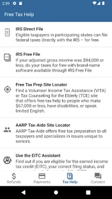 IRS2Go makes it easy to locate nearby Volunteer Income Tax Assistance (VITA) and Tax Counseling for the Elderly (TCE) sites. These programs offer free tax help to eligible individuals, ensuring that everyone has access to the assistance they need.