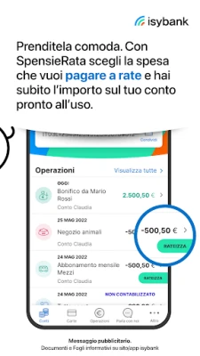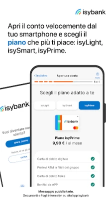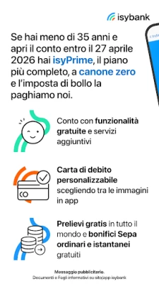 All services available through the Isybank app are subject to the terms and conditions outlined in the My Key contract from the Intesa Sanpaolo Group. For detailed information about banking and credit products, please refer to the informational documents available on the bank's website and app.