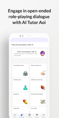 Aoi utilizes advanced AI technology, including ChatGPT, to engage you in role-playing conversations across various scenarios. This feature ensures you excel in real-life Japanese communication, making it easier to navigate everyday interactions.