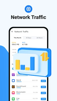 Stay informed about your data usage with Ora Phone Master’s network traffic features: