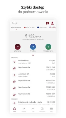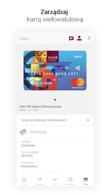 The Kantor Walutowy app also simplifies the management of your multicurrency card: