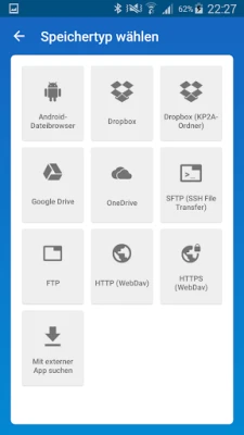 For those who require access to their passwords across multiple devices, the app offers robust cloud synchronization options. You can synchronize your vault using popular cloud services such as Dropbox, Google Drive, SFTP, WebDAV, and more. If you prefer to keep your data offline, the "Keepass2Android Offline" option is available for users who do not need cloud features.