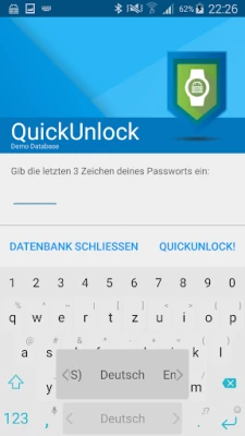 The QuickUnlock feature enhances user experience by allowing you to unlock your database with your full password just once. After the initial unlock, you can re-access your vault by typing only a few characters or using your fingerprint. This feature not only saves time but also adds an extra layer of convenience for users who frequently access their passwords.