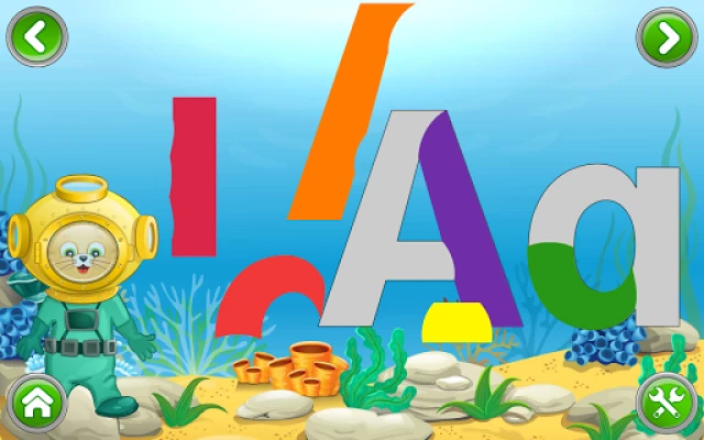 Children dive into an underwater adventure to collect letter-coins, which they then use to arrange four letters in the correct order. This activity not only teaches the sequence of the alphabet but also enhances cognitive skills through play.