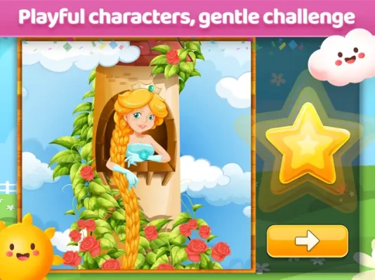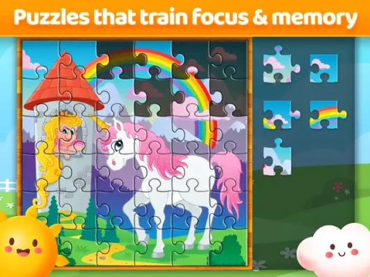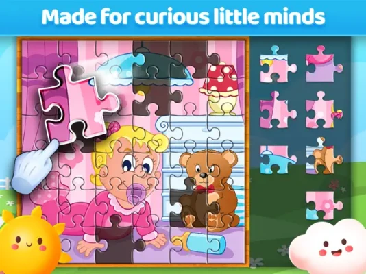 As one of the most downloaded educational apps for kids, our jigsaw puzzle game features charming, hand-painted images that captivate young minds. Upon completing a puzzle, children receive a congratulatory message along with a small yellow star, providing positive reinforcement that encourages them to continue learning and playing. This cycle of success fosters a love for problem-solving and boosts their confidence.