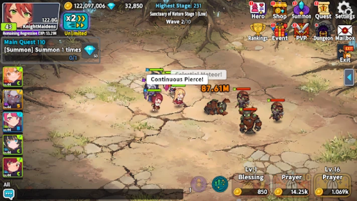 Combat in Knight Maidens is not just about brute strength; it requires careful strategy and planning. Build your deck using five elemental types: Fire, Water, Nature, Light, and Dark. Utilize the Elemental Advantage system to deal +50% damage to your enemies, allowing you to crush powerful bosses with ease. Optimize your formation by mixing Tanks, Dealers, and Healers to create a balanced team that can tackle any challenge.