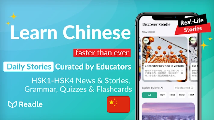 Unlock the beauty of the Mandarin Chinese language with Readle, the premier language-learning app designed to elevate your skills from HSK1 beginner to HSK4 advanced levels. With just 10 minutes a day, you can immerse yourself in Chinese vocabulary, pinyin, grammar, and more. Whether your goal is to enhance your conversational skills, prepare for exams, or adapt to life in China, Readle simplifies the learning process!