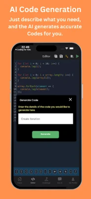 Need assistance in writing a specific piece of code? The app's AI is ready to help! Learners can simply ask for examples, such as “Show me a for loop in Python,” and the app will generate the corresponding code. This feature allows young coders to learn by example, enhancing their comprehension of various coding concepts in Python.