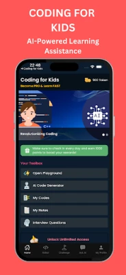 To enhance the learning experience, the app includes a note-taking feature. Young learners can jot down important concepts, ideas, or key points they want to remember. This organizational tool helps them stay focused and ensures they can easily revisit essential information as they progress through their coding journey.