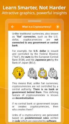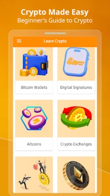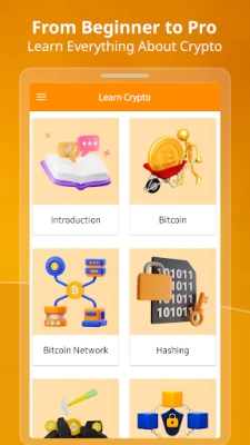 The Learn Crypto Trading app is structured as a comprehensive training course that begins with the fundamentals and progresses to advanced topics. You will explore popular cryptocurrencies like Bitcoin and Ethereum, and even learn the intricacies of cryptocurrency mining.