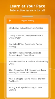 Understanding that internet access can be limited, the Learn Crypto Trading app allows you to download lessons for offline use. Whether you're traveling or in a remote area, you can continue your education without interruption.