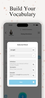 Build a solid foundation in English with dedicated grammar lessons and vocabulary exercises. Discover new words, save them for future reference, and review them at your convenience to reinforce your learning.