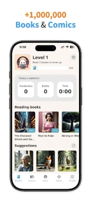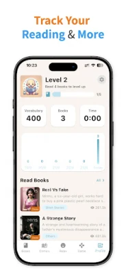 Stay motivated by tracking your reading habits! The app allows you to monitor your daily reading time, the number of books completed, and your vocabulary growth. Personalized statistics provide insights into your reading improvements over time, helping you set and achieve your literary goals.