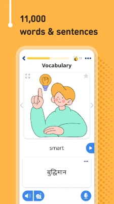 - 6,000 Hindi Words: Continuously updated, our collection includes the most common nouns, verbs, adjectives, and more, organized into 7 levels and 200 topics.