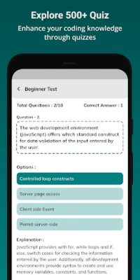 Testing your knowledge is crucial for mastering any subject. The Learn JavaScript App offers quizzes tailored to different skill levels: