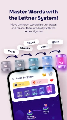 Monitor your growth! Our app provides insightful analytics that track the words youβve learned, challenges youβve completed, and your overall language mastery level. This feature helps you stay aware of your progress and motivates you to keep going.
