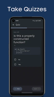 Each lesson is followed by quizzes that not only test your knowledge but also improve your overall learning progress. This interactive approach keeps you engaged and motivated throughout your Python learning journey.