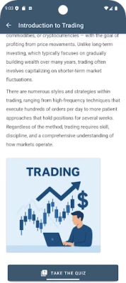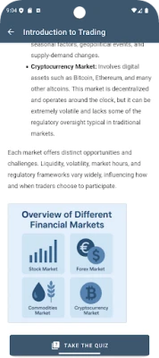 In the dynamic world of trading, knowledge is your most valuable asset. Each chapter of our comprehensive trading program features an interactive quiz designed to test your understanding and reinforce the concepts you've learned. These quizzes are meticulously crafted to validate your grasp of essential trading principles, making your learning journey not only engaging but also practical and effective.