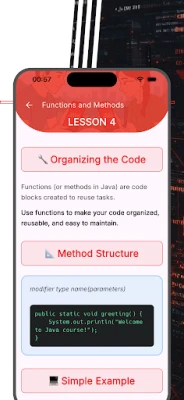 Unlike many other courses, Learn Java features a built-in integrated development environment (IDE) directly within the application. This allows you to write, compile, and execute Java code in real time without any complicated setup. Experience the joy of coding as you see your work come to life instantly.